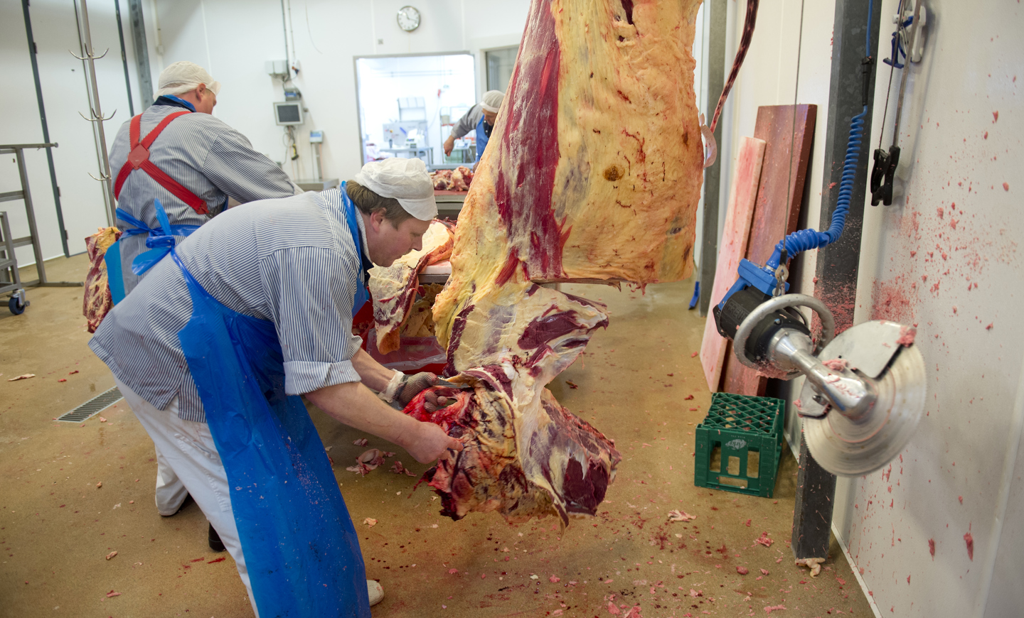 - Den nænsomme slagtning giver bedre kød. Når dyrene er slagtet, hænges de til nedkøling natten over. Vi tror, at en nænsom behandling giver både en bedre kvalitet og et mere miljørigtigt resultat. Sammen med det velvalgte foder, lang opfostringstid og en perfekt krogmodning i op til fire uger, giver det mørt kød med en rigtig god smag, siger Torben Petersen.