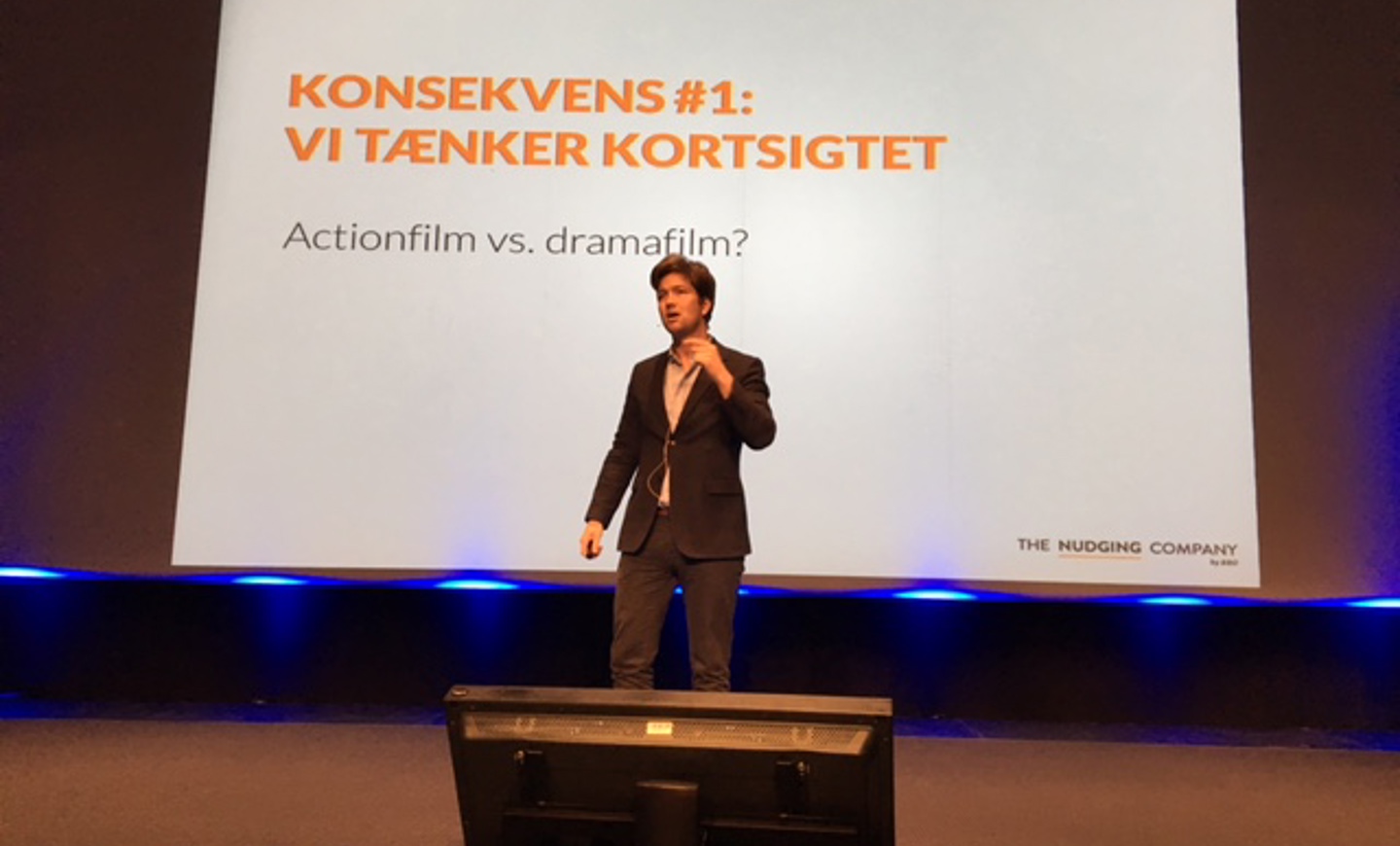 Efter 45 sekunder kaster 600 repræsentanter fra mejerier og faglige organisationer deres hænder her i Kolding efter det ene og andet synspunkt. Både bananerne, æblerne og appelsinerne får stemmer. Morten Münster fra The Nudging Company forklarer, hvorfor alle burde have gættet på bananen.