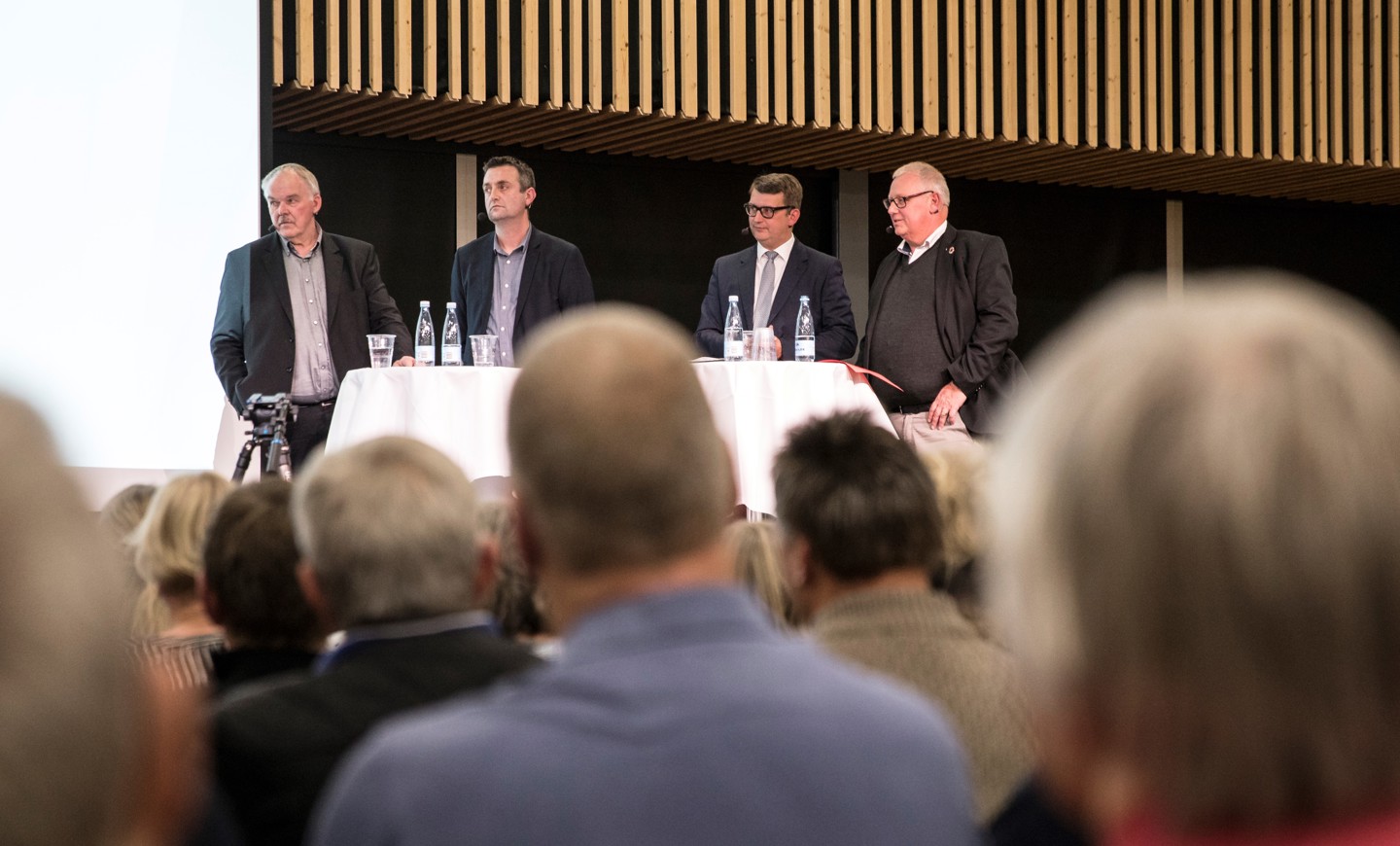 Mere end 250 mennesker var mødt op for at høre politikerne beskæftigelsesminister Troels Lund Poulsen (V), beskæftigelsesordfører Leif Lahn Jensen (S) og beskæftigelsesordfører Bent Bøgsted (DF) debattere fysisk nedslidning og værdig tilbagetrækning for de lønmodtagerne, der er nedslidte før pensionsalderen, som stiger og stiger.