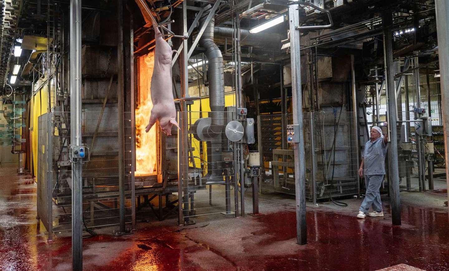 Efter 35 minutter var det slut. Den sidste gris køres på frys. Torsdag skal den skæres op, og senest fredag bliver den pakket og forlader slagteriet. I dag lukkede slagterkæden. I morgen lukker opskæringen, og på fredag lukker hele slagteriet.