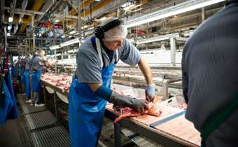 Slagteriarbejderne hos Danish Crown i Herning arbejder på højtryk op mod julen, for de skærer flæskestegene, som lander på de danske juleborde.